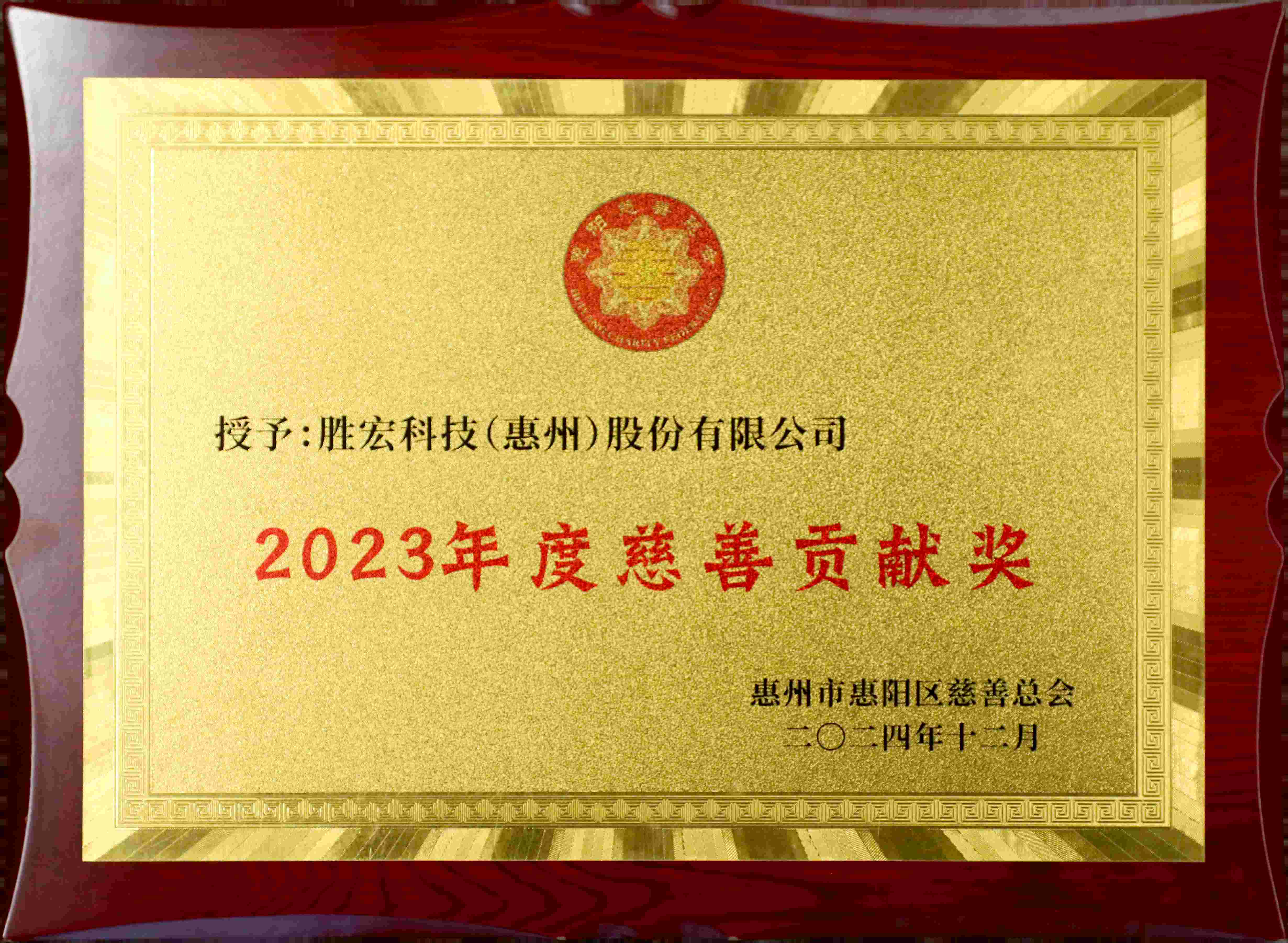 获得2022年惠州慈善贡献奖
